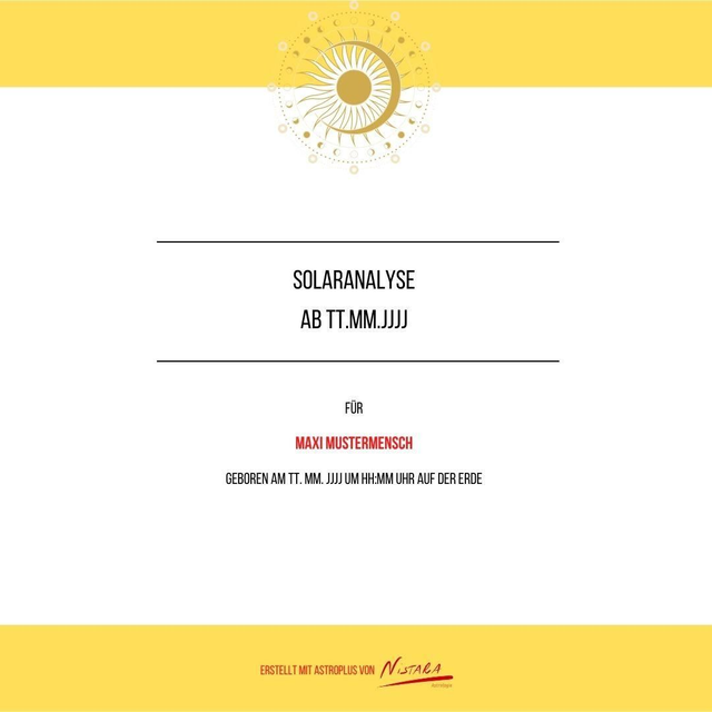 Das Solar beschreibt deine Lebensbühne im laufenden Jahr. Welche Themen sind für dich jetzt wichtig? Welche Lernaufgaben stehen an? Und welche sozialen, beruflichen und gesellschaftlichen Tendenzen zeichnen sich in diesem Jahr für dich ab?