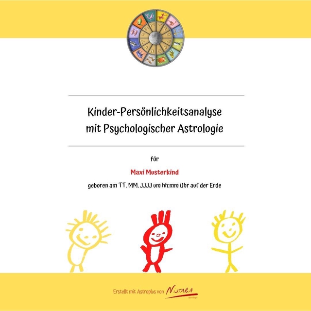 Ein Kinder-Persönlichkeitshoroskop beschreibt die grundlegenden Charakterzüge des Kindes. Es gibt dir einen Einblick in die Talente, Potenziale und Gefühlsanlagen des kleinen Menschen. Damit bekommst du ein Mittel in die Hand, um dein Kind bei der Entfaltung seiner Persönlichkeit optimal zu unterstützen. Du erhältst anhand der Geburtsdaten ein individuell auf dein Kind abgestimmtes Geburtshoroskop.
