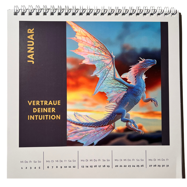 Tischkalender 2025 aus der Reihe "Mystische Drachenwesen" von Birgit Hable (www.freiräume.de).